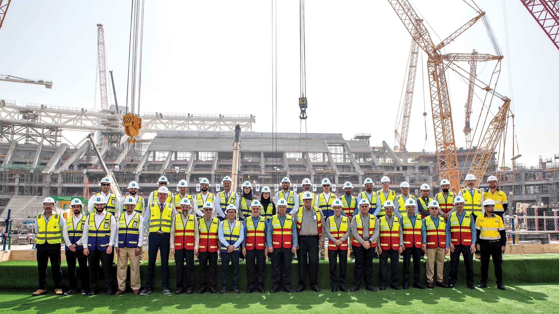 Company executives visited the Aramco Stadium project site as part of the Executive Management Safety Review (EMSR) this week. They witnessed the project’s progress, as well as the various construction safety measures that have been put in place to safeguard against safety incidents and to ensure the health and well-being of the workforce throughout the stadium’s construction.